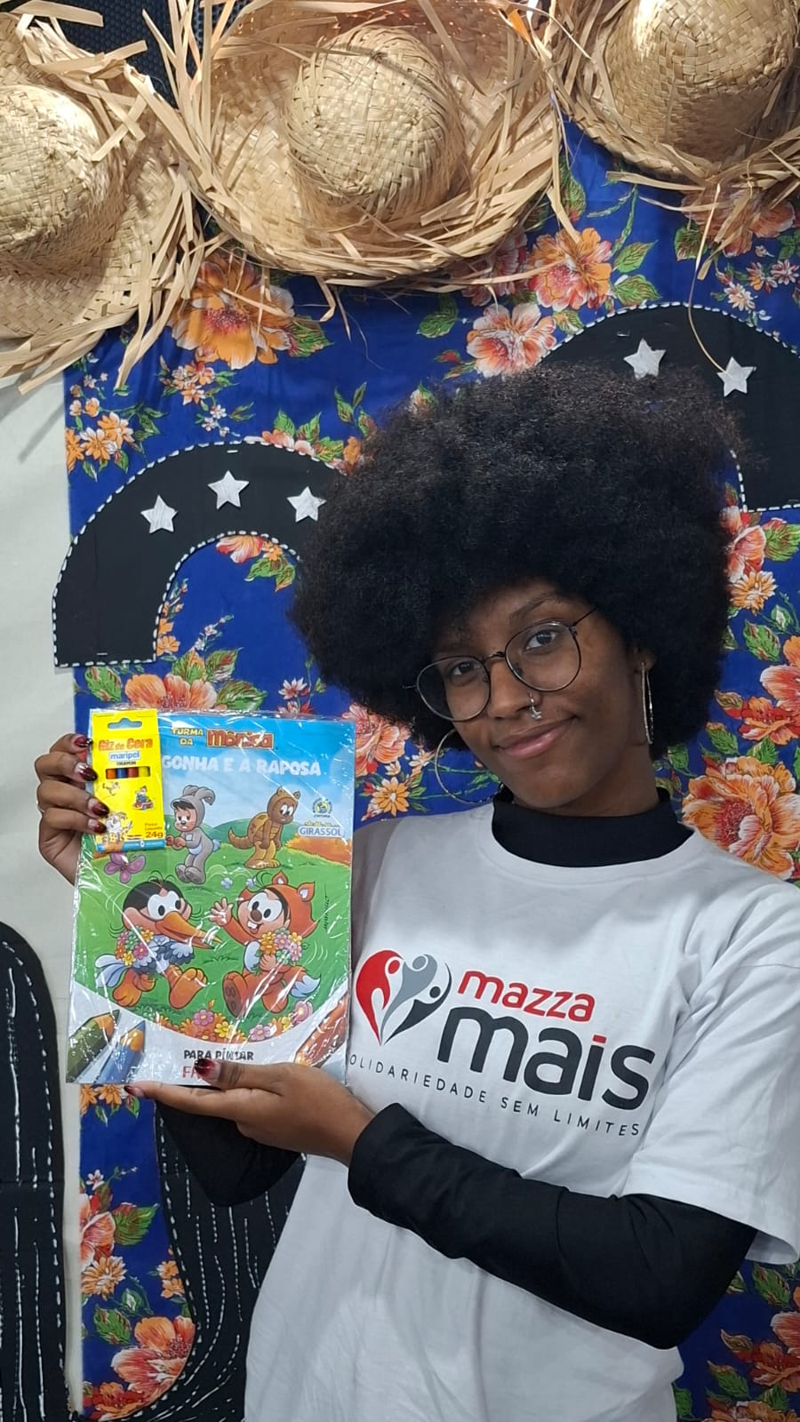 O Mazza Mais já entrou no clima de São João e contribuiu com a doação de 200 kits com livros de colorir e giz de cera, que viraram prendas nas brincadeiras da festa, além do voluntariado nas barracas de bebidas quentes e brincadeiras.