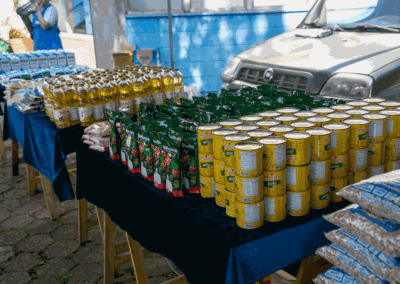 O Mazza Mais doou 600kg de arroz e feijão para poder compor os kits doados para essas duas iniciativas, sendo uma parte entregue no dia 17/10 para 150 famílias na Fila do Pão.