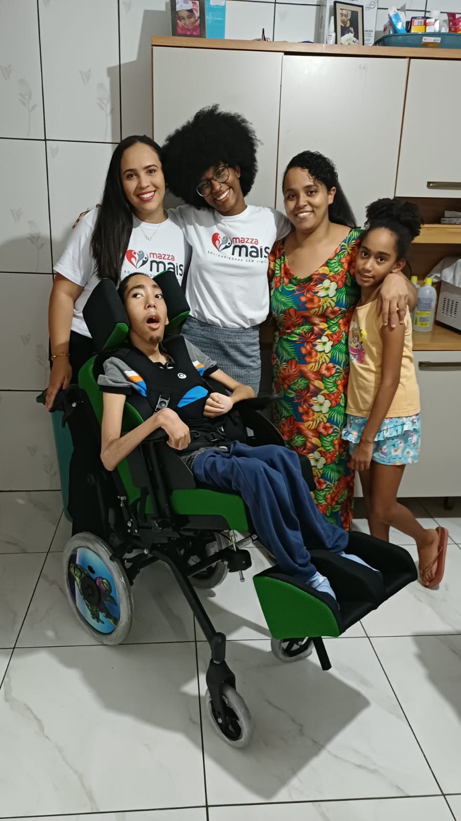 Uma cadeira de rodas feita sob medida é essencial para ajudar a reduzir o avanço da escoliose e trazer mais conforto e qualidade de vida para Kauan, sendo esse item doado pelo Mazza Mais e entregue no dia 19/03 em uma visita muito especial.