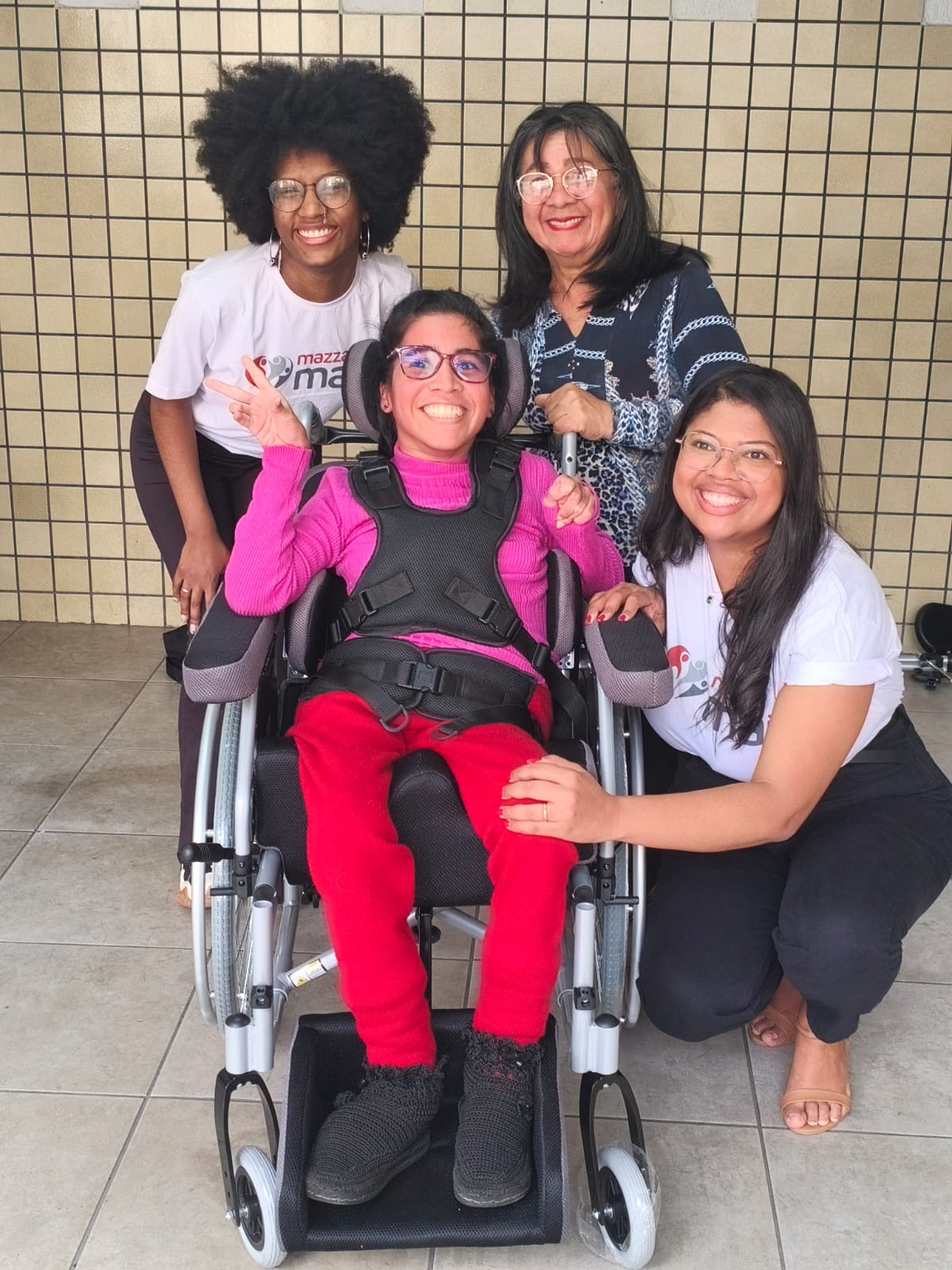 Por uma indicação, o Mazza Mais doou uma cadeira de rodas feita sob medida para Marianny que substitui o uso do colete, garantindo conforto, segurança e qualidade de vida.