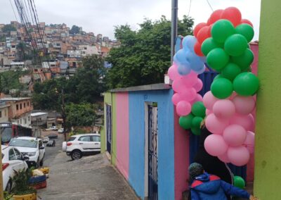 Decidiu transformar a própria casa em um espaço comunitário para acolher as crianças que ficavam sozinhas durante o dia. Começou com 25 crianças e, em menos de um mês, já eram mais de 100. Sem recursos, usou o que tinha: a sala, a cozinha, construiu um barraco de madeira.